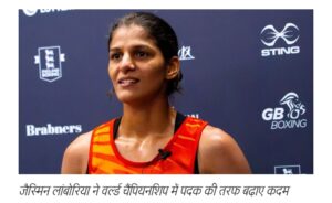 भारतीय मुक्केबाज जैस्मिन लांबोरिया ने विश्व मुक्केबाजी चैंपियनशिप में 57 किलोग्राम भारवर्ग के क्वार्टर फाइनल में जगह बनाई। उन्होंने ब्राजील की जुसीलन सेर्कुइरा रोमीयू को 5-0 से हराया। अभिनाश जम्वाल ने भी पुरुषों के 65 किग्रा वर्ग में जीत दर्ज की। हालांकि साक्षी और सनमाचा चानू को हार का सामना करना पड़ा। अब सचिन सुमित नरेंद्र और नीरज फोगाट से अच्छे प्रदर्शन की उम्मीद है।